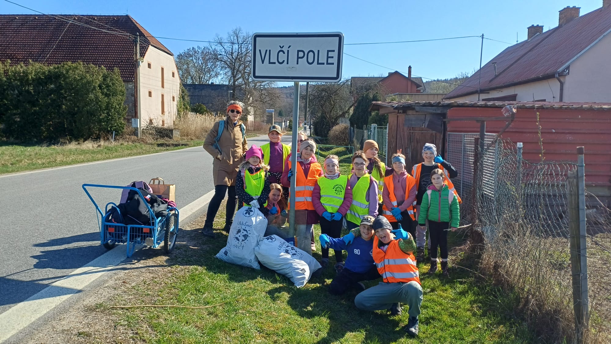 V pátek 27. března jsme s patnácti dětmi vyrazili z Dolního Bousova do Vlčího Pole. Přestože bylo slunečno, bylo chladno a foukal studený vítr. Hned u školy si děti oblékly reflexní vesty, rozdělili jsme se do dvou skupin a na konci Vlčopolské ulice jsme začali se sběrem odpadků po obou stranách silničního příkopu. Kromě šesti pytlů odpadu a dalšího nepořádku, který se do pytlů nevešel, jsme objevili několik sražených zvířat: srnku, tři nutrie, kunu a červenku.
